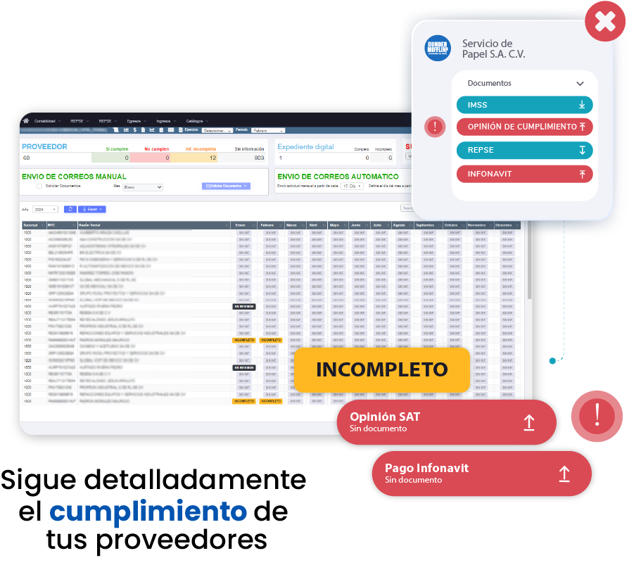 Para proveedores es indispensable comprobar el pago de impuestos y aportaciones patronales de los empleados que dan servicio a sus clientes para que ambos eviten consecuencias fiscales con la autoridad. Con Mi REPSE esto no será una carga administrativa.